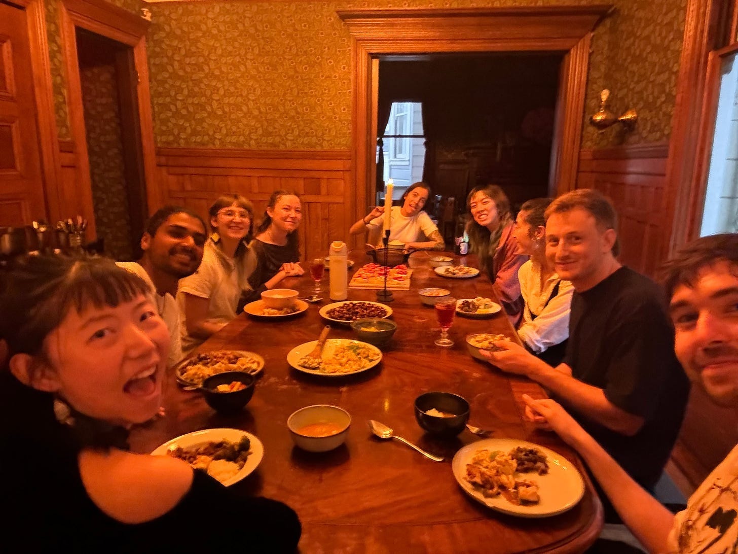 Agape, the subject of the case study below, was one of the first coliving houses I visited in San Francisco. It is an almost mythologically beautiful Victorian mansion, with gilded wallpaper and intricately carved mahogany staircases. I’m so glad to finally share a bit more context on its colorful past and inner workings thanks to Nico, who lived there for three months this year.