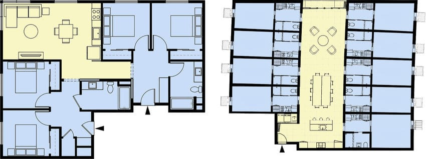 In those markets, coliving typically wins from a pro forma standpoint. While coliving bedrooms generally rent for 15-25% less than 400 square foot studios, they don’t need to follow the same regulatory guidelines—they aren’t independent units, after all—and can be built much more densely.